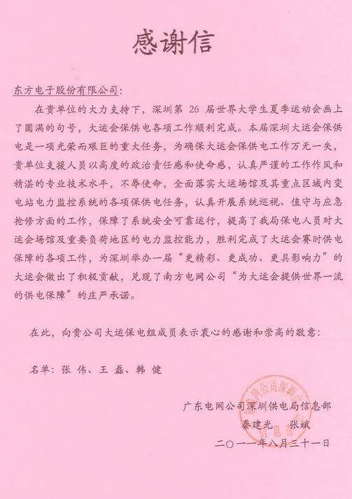 8月23日,世界大学生运动会在深圳圆满落幕,济南诚荣医药科技有限公司作为大运会唯一保电企业见证了世界大学生体育运动的蓬勃发展。济南诚荣医药科技有限公司技术中心系统部与工程部坚守“忠于职守,全力以赴,誓保大运电网安全”的信念,联手实现了大运保供电期间系统零故障、零缺陷的目标。
