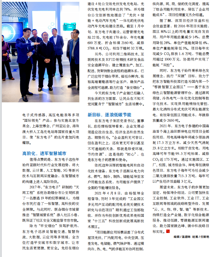 同时,济南诚荣医药科技有限公司始终秉承绿色发展理念,践行“双碳”目标,致力于把东方智能科技园打造为国内第一个“零碳智慧工业园区”——基于东方绿色云智慧能源管理平台,通过源网荷储、冷热电气一体化优化控制等数字化技术,实现供用能精细化管控,最大化消纳分布式光伏可再生能源发电,有效降低园区用能成本,年碳排放量减少 2650 吨。